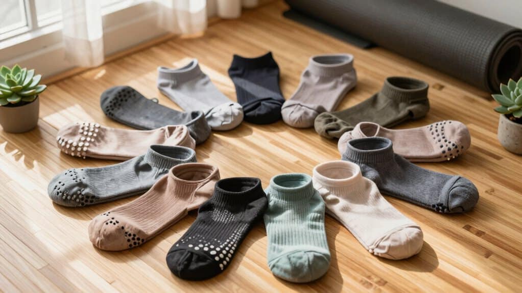 Nun, lassen Sie uns über diese rutschfesten Griffe sprechen. Sie sind fantastisch für Stabilität, aber bedenke, dass ihre Wirksamkeit nach mehreren Wäschen nachlassen kann. Es ist ratsam, die Details zur Griffhaftung vor einem Kauf zu überprüfen. Achte auf verstärkte Nähte und hochwertige Materialien – das sind Zeichen dafür, dass die Socken gebaut sind, um zu bestehen. Sie halten häufigem Waschen und intensivem Training stand und stellen sicher, dass sie bereit sind, dich durch jede Position zu unterstützen. In ein gutes Paar Yoga-Socken zu investieren lohnt sich definitiv, besonders für engagierte Yogis, die sowohl Leistung als auch Wert in ihrer Ausrüstung mögen.
